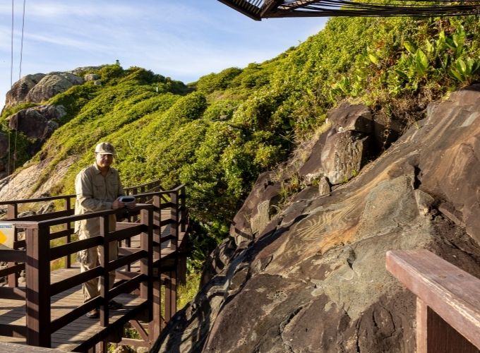 Nas pedras do litoral catarinense estão gravadas vozes de milhares de anos. São histórias sobre os astros, a natureza e a sabedoria dos povos originários — marcas que atravessaram o tempo e hoje formam a chamada Tradição Litorânea Catarinense. Ao todo, são 28 sítios arqueológicos, sendo 26 em ilhas costeiras.