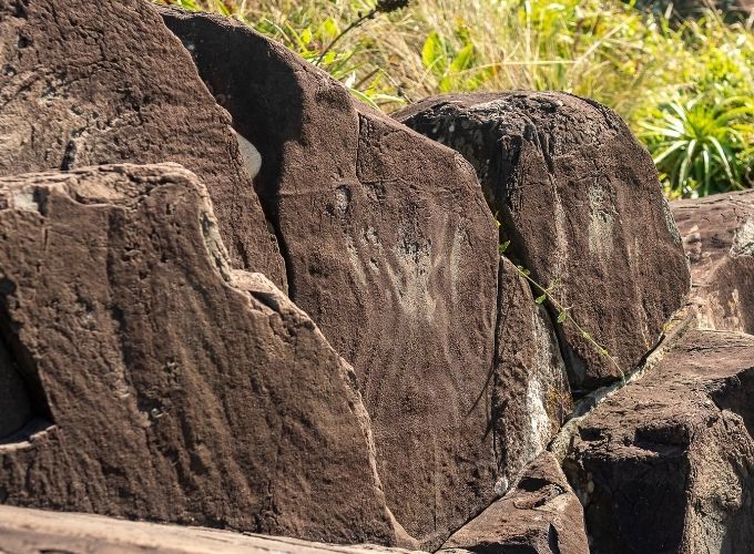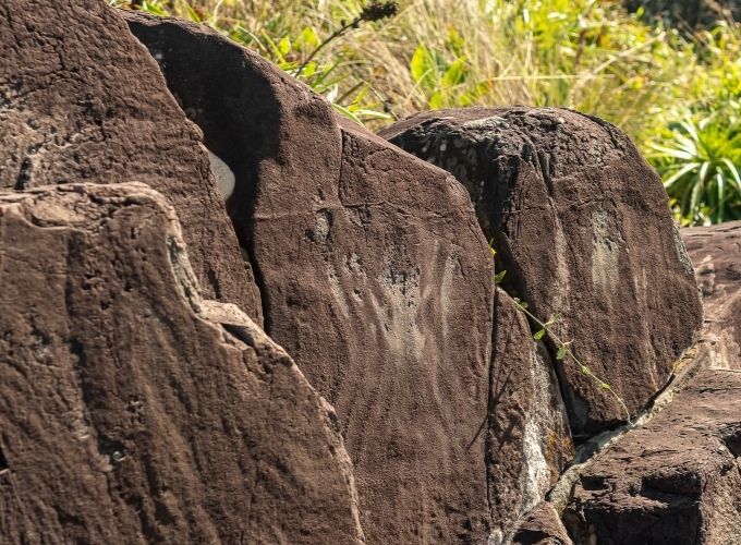Entre eles, um destaque especial: os quatro sítios da Praia do Costão do Santinho, em Florianópolis. Ali se encontra uma das maiores concentrações de gravuras rupestres do estado. Entre os símbolos mais recorrentes estão as famosas “ampulhetas”, figuras enigmáticas que podem guardar segredos sobre a visão de mundo, o tempo e até os astros para aqueles povos.